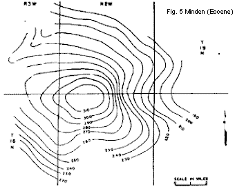 Fig. 5. Surface structure map (1931) on top of Minden beds (Eocene). Contour interval, 10 ft. (From Walker, 1953.)