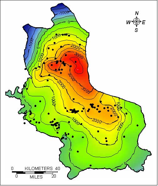 Figure 2. Isopach of the "gas column" (based on continuous gas shows) above the Rollins Sandstone.