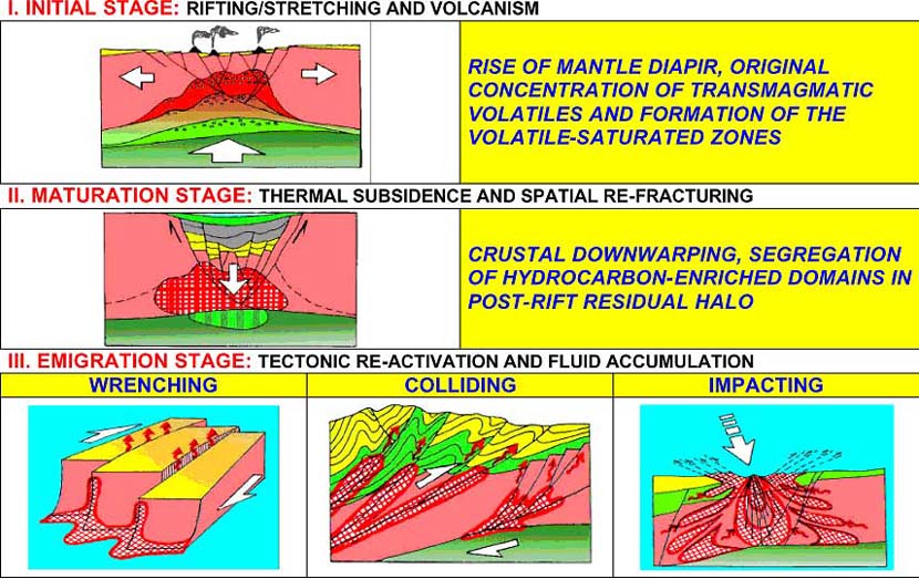 Figure 1. Principal stages of deep petroleum maturation and migration.