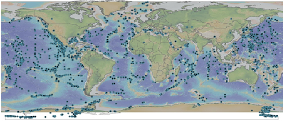 Map illustrating the number and geographic distribution of samples currently registered with SESAR.