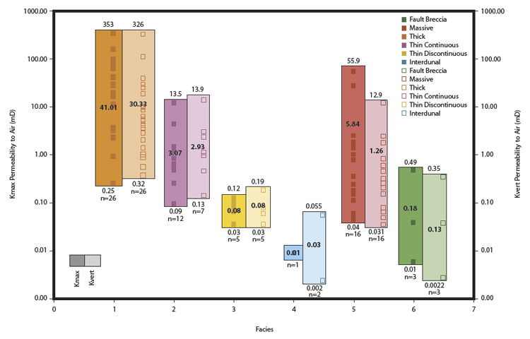 Figure 14. Permeability for Upper Navajo lithofacies.