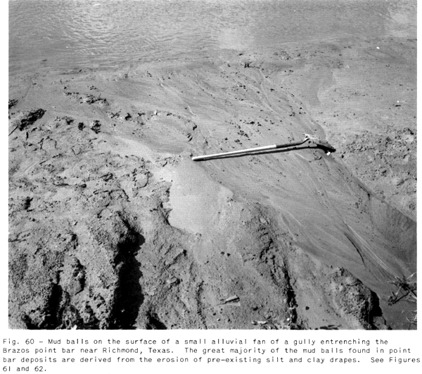 cases mud balls occur in small alluvial fans (Figures 60 and 61) formed near the low stage