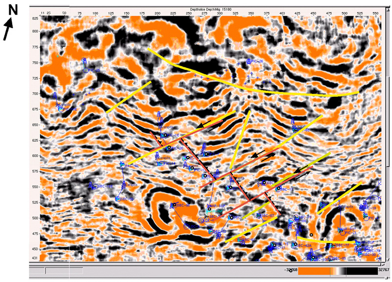 Figure 5.6. Depth slice showing the vertical transfer faults.