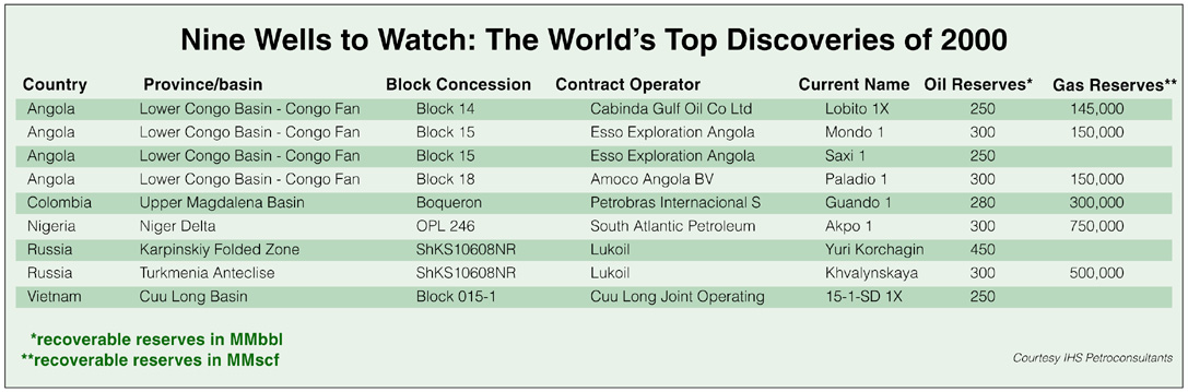 Table 1. Nine wells, representing the top discoveries of 2000, with general locations and estimates of recoverable reserves.