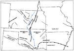 13--Pre-Woodford subcrop with inferred paleodrainage pattern and major faults