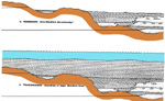 paleotopography with well developed fluvial paleodrainage system, (B) initial