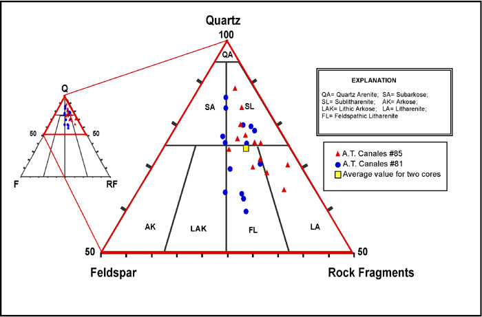 Figure 10. Composition of the 9900-ft sandstone plotted on QRF diagrams (Folk, 1974).